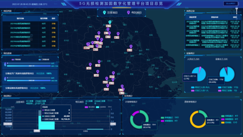 可视化施工管理平台从项目信息录入、施工动态监测到项目质量检查及验收,为道路施工建立一套完整的信息化运营管理体系。将传统的人工管理升级为数字化管理,通过图表功能数据分析功能为项目的经营管理者提供全面的数据信息,有利于实现透明化管控运营成本,提高项目管理效率、生产效率。