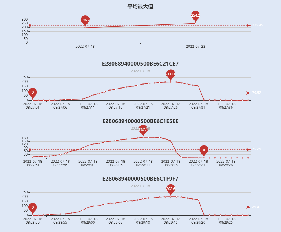 数据采集控制单元联动压力试验机及试块RFID身份信息,进行数据整合,并发送至数据管理平台,进行试块的压力数据、成组试块平均值和养护周期历史曲线等数据的计算及展示。